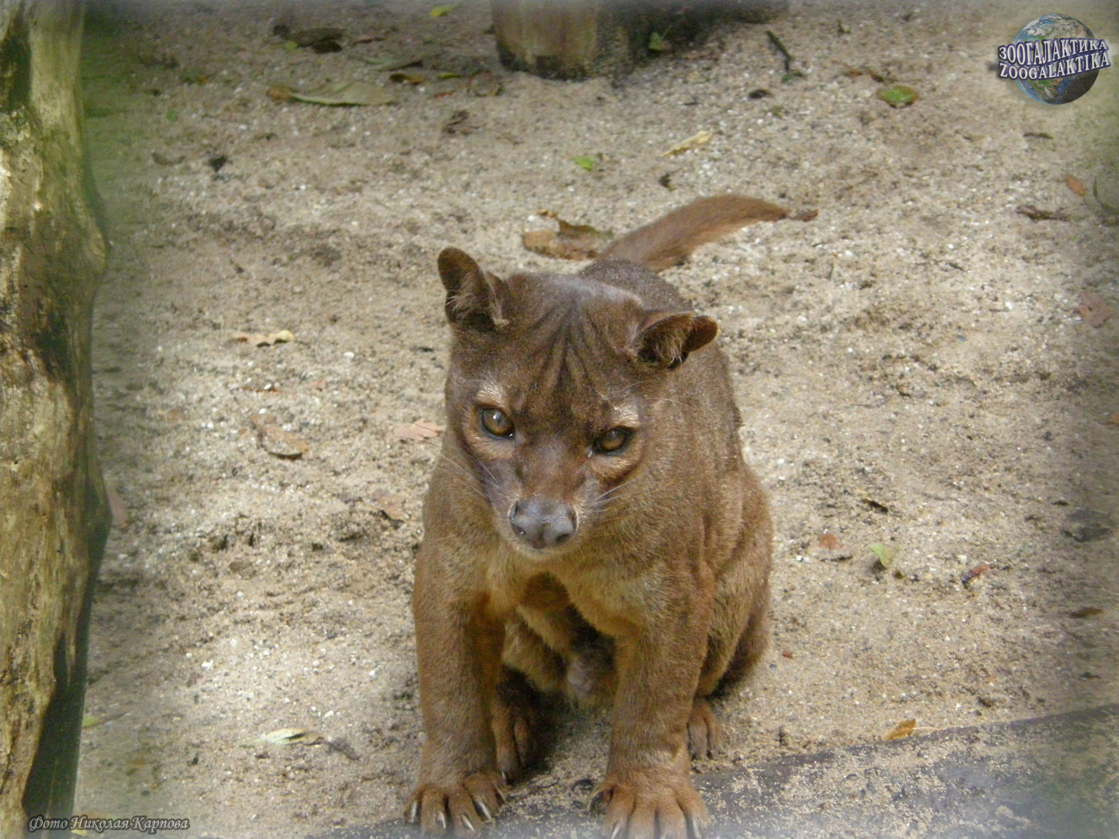 Фосса - хищное млекопитающее, относящееся к особому семейству мадагаскарских хищников. Это самое крупное хищное млекопитающее острова Мадагаскара, и больше нигде на земле фосса не встречается, то есть, является эндемичным животным. Внешне она напоминает мелкую пуму. Фосса имеет длину тела до 80 см, высоту в холке до 37 см и вес до 12 кг. Тело у нее массивное, плотное и удлиненное. Ноги – относительно длинные и толстые, когти – короткие, похожие на кошачьи. Задние ноги немного выше передних.