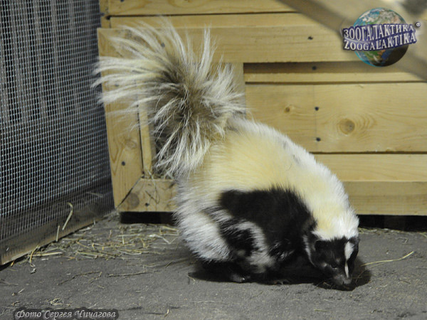 Совсем не похожи ни на собаку, ни на медведя члены семейства скунсовых. Они невелики ростом, но, тем не менее, очень и очень опасные животные. В Америке встречи со скунсом люди боятся, наверное, больше, чем с медведем. Дело в том, что у этих зверьков есть железы, откуда при появлении опасности выделяется исключительно въедливое и отвратительно пахнущее вещество. А сам зверёк очень даже симпатичное и интересное животное: пушистый хвостик, белые пятнышки или полоски на густой и длинной чёрной шерсти. Но оснащён скунс как настоящий хищник: телосложение сильное, изумительной остроты когти, да и зубы совсем не плохи.