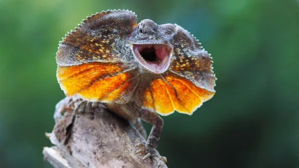 Эта удивительная рептилия обитает в сухих лесах Австралии и Новой Гвинеи. Её главная особенность — огромный кожистый воротник вокруг шеи, который она раскрывает при опасности. Яркая складка кожи поддерживается тонкими костями и делает ящерицу крупнее и устрашающе для хищников. Защитные действия также включают шипение и удары хвостом по земле. Кроме того, плащеносная ящерица умеет бегать исключительно на задних лапах, что добавляет ей необычности.