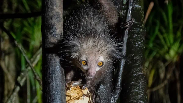 Известная как ай-ай, эта маленькая приматка — одна из самых загадочных обитательниц Мадагаскара. У неё длинные, тонкие средние пальцы передних лап, которые используются для добычи насекомых из коры деревьев. Эти пальцы также помогают проталкивать пищу в рот. Ай-ай имеет неповторимый внешний вид: большие глаза, густую шерсть и необычную манеру питания.