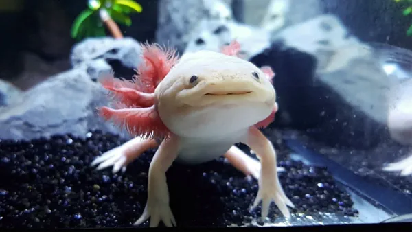 Аксолотль, или мексиканская ходячая рыба, — одно из самых удивительных созданий среди амфибий. Этот организм остаётся на стадии личинки всю жизнь, не превращаясь во взрослую форму (явление, называемое неотенией). Несмотря на это, аксолотль способен размножаться. Его добродушная "улыбка" и уникальные регенеративные способности сделали его популярным в интернете.
