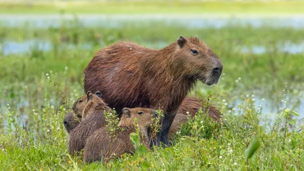 Капибары — крупнейшие грызуны на планете, достигающие веса более 65 кг. Они обитают в Южной Америке и ведут полуводный образ жизни. Несмотря на неуклюжий вид, эти животные могут быстро бегать и нырять под воду на несколько минут. Капибары — социальные существа, живущие в больших группах.