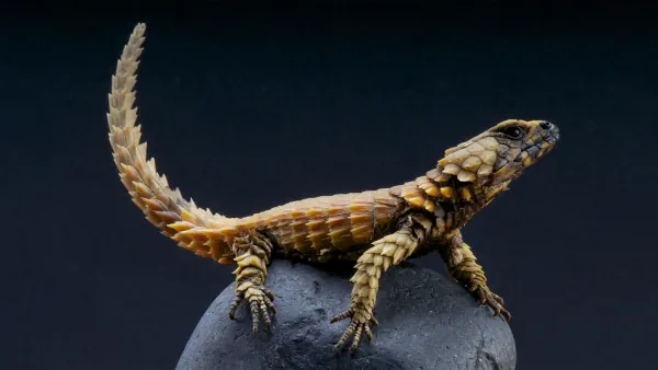 Эта южноафриканская ящерица напоминает крошечного дракона. Её тело покрыто широкими чешуйками, а хвост и лапы увенчаны шипами. При опасности она хватает хвост зубами и скручивается в колючий шар, защищая себя от врагов.