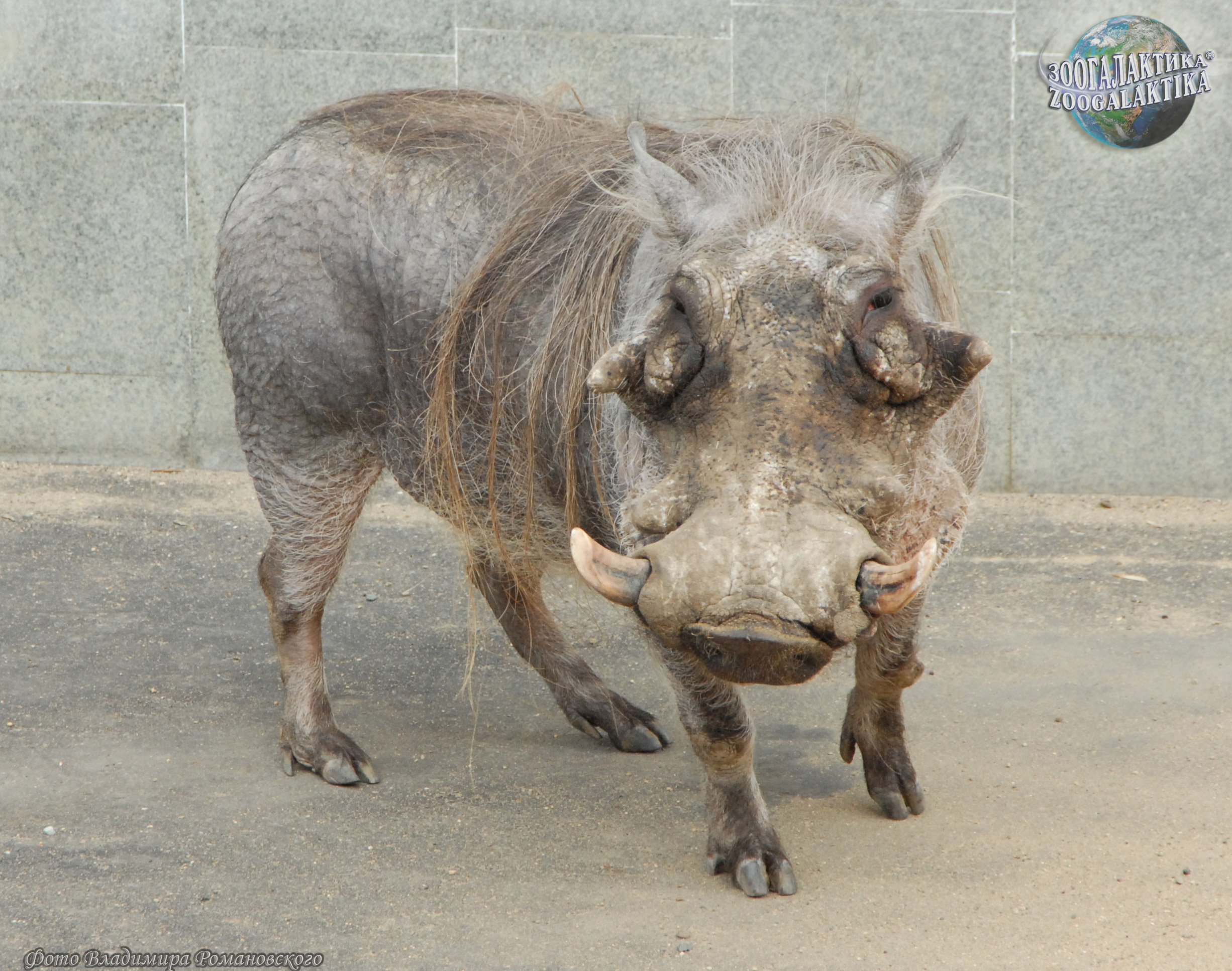 Пустынный бородавочник (Phacochoerus aethiopicus) на первый взгляд весьма непривлекателен, так как его морда покрыта множеством бугров, похожих на бородавки, и чем старше животное, тем крупнее его бородавки – у старых же самцов вся морда бывает покрыта крупными шишками. По всей спине этого «чудовища», от затылка до хвоста, по хребту тянется довольно длинная рыхлая грива; его глаза с густыми ресницами окружены жесткой щетиной, такая же щетина образует на нижней челюсти заметные бакенбарды; картину дополняют огромные кривые клыки, достигающие 30 см в длину (рекорд - 67 см!). От африканских бородавочников пустынные отличаются отсутствием функциональных резцов и меньшими размерами тела.