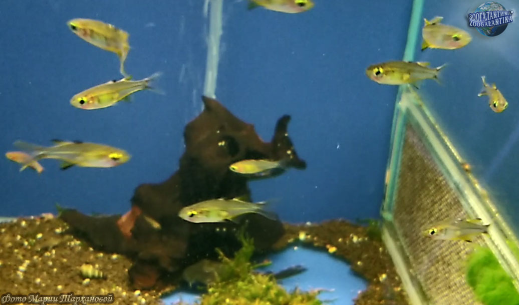В качестве нерестового подойдет аквариум объемом от 50 литров, температуру воды в котором необходимо повысить до 26-28°С. Ее жесткость должна находиться на уровне 15-20°. Вода должна быть слегка солоноватой. Максимальный уровень воды не более 20 см. Необходимо яркое освещение. В качестве субстрата для нереста можно использовать растения с мелкими листьями.