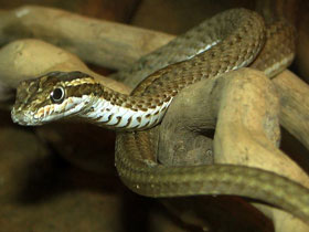 Семейство Ужеобразные змеи (Colubridae) - самое богатое в видовом отношении семейство змей, объединяющее около 1700 видов (это более 60% видов мировой фауны змей). Ужеобразные распространены повсеместно, кроме самых полярных областей. От других групп змей их отличает отсутствие рудиментов задних конечностей и ряд признаков в строении внутренних органов. Зубы у этих змей неподвижные и варьируют по величине и форме в зависимости от типа добычи. У некоторых змей на передней поверхности задних верхнечелюстных зубов может присутствовать борозда для стекания яда, другие имеют подвижные "шарнирные" зубы, прикрепляющиеся к челюсти гибкими соединительнотканными волокнами и использующиеся при поимке и удержании добычи. Сталкиваясь с жёстким препятствием, зуб не ломается, а прижимается к поверхности челюсти, при этом удерживая добычу во рту. Большинство змей этого семейства не опасно для человека и не имеют больших ядовитых зубов. У некоторых ужеобразных туловище плавно переходит в голову, у других же голова отделена отчётливо выраженным шейным перехватом. Хвост также бывает различной формы и размеров, у одних видов он длинный тонкий и цепкий, у других - резко утончающийся или толстый и тупо закруглённый. Окраска этих змей очень разнообразна: встречаются как однотонно окрашенные виды, при этом цвет окраски может быть чрезвычайно ярким, так и многоцветные, чья окраска состоит из перемежающихся разноцветных пятен или полос. Зрение у большинства видов хорошо развито и служит основным средством поиска добычи, лишь некоторые роющие и ночные змеи имеют сильно уменьшенные глаза. У многих ночных видов зрачок принимает форму вертикальной щели. Размеры ужеобразных варьируют от 15 см до 3,5 метров.